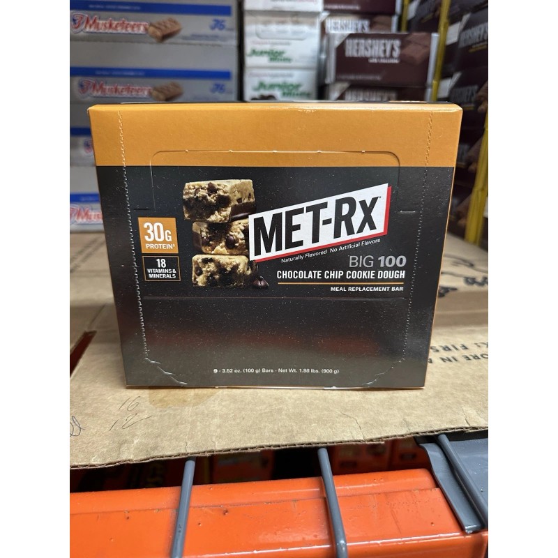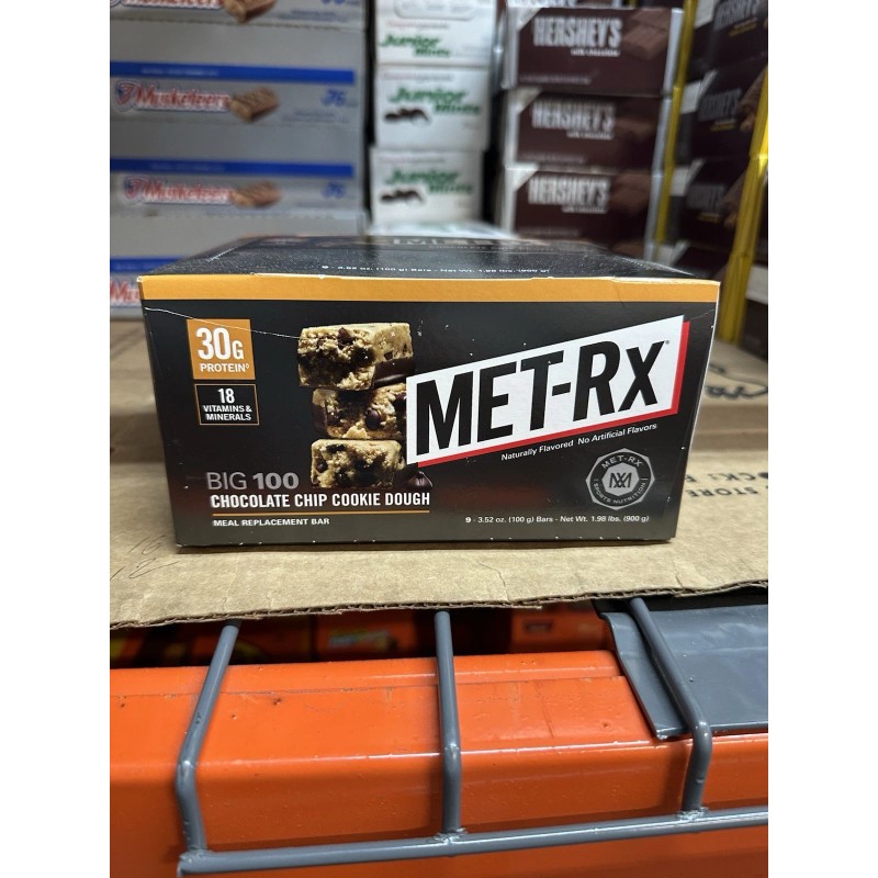 MET-RX Big 100 Colossal Protein Bars Chocolate Chip Cookie Dough 9 Count 02/2026