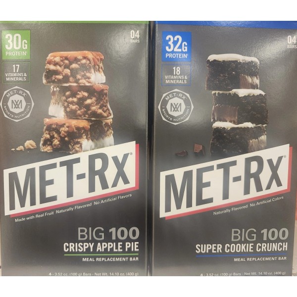 MET-Rx Big 100 Colossal Protein Bars Variety Pack, Super Cookie Crunch and Crisp