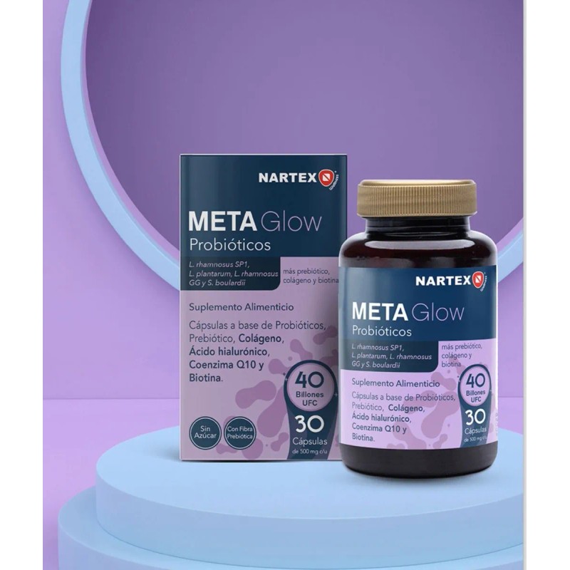 Meta Glow Probióticos, Colágeno, Ácido Hialurónico 30caps Sabor Sin Sabor