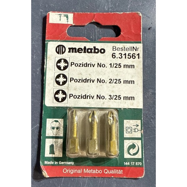 Metabo Screwdriver bit set Pozidriv size 1,2,3 631561000 631561 FREE SHIPPING