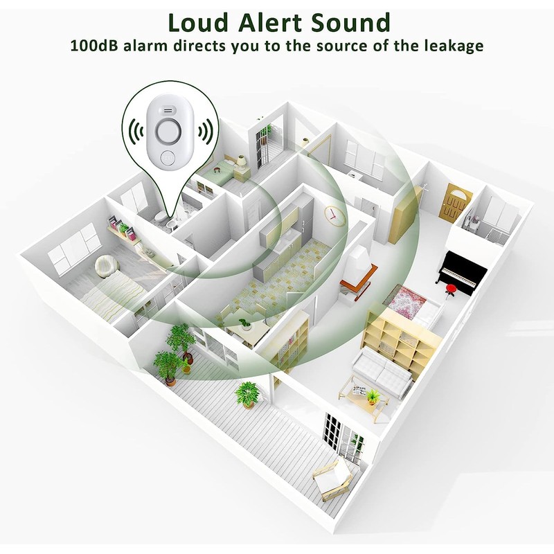 - Loud & Mute: Our water leak alarm have loud and Mute Mode. It can emit 100 dB audio and loud enough to be heard even if leaks happened in basement. Press the button to mute the Water Detector Alarm when you arrived the flooded place.