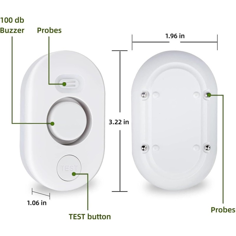 - Leaking & Dripping: 2 water sensitive probes on the front for monitoring pipe/drain drip and 4 rear probes for detection water leak & floor moisture/flood. Both are work simultaneously, whatever leak sensors contact water, it will warning you in time.
