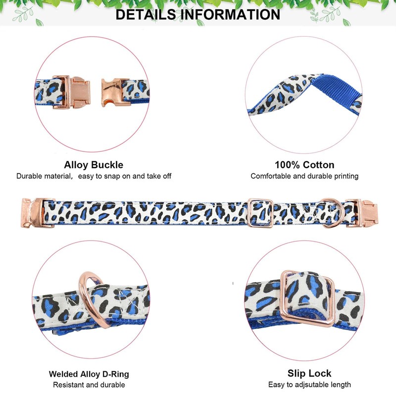 Metal Buckle Dog Collar, Durable Adjustable Dog Collar Soft for Small Medium Large Dogs (S(10-14in), Blue Leopard)