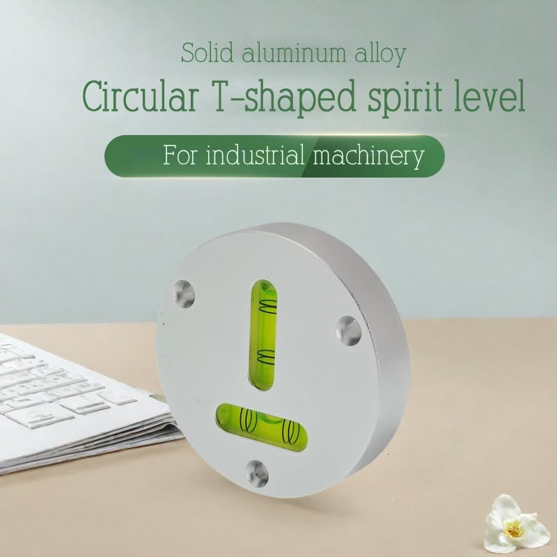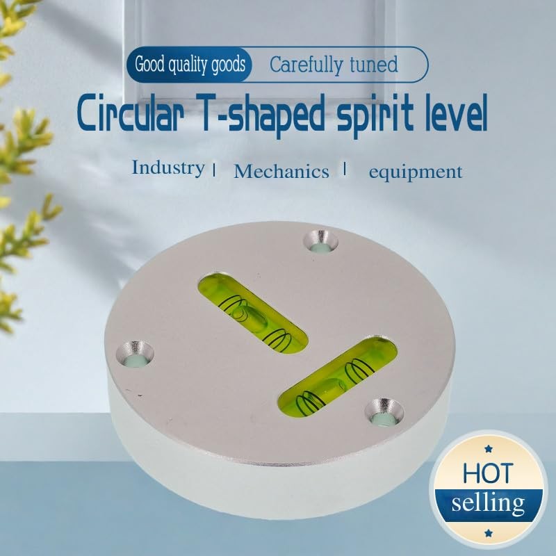 Metal Circular Horizontal Bubble T-Shaped XY axis bidirectional Level, Metal Level with Diameter of 60mm and Installation Hole (Acrylic Foam)