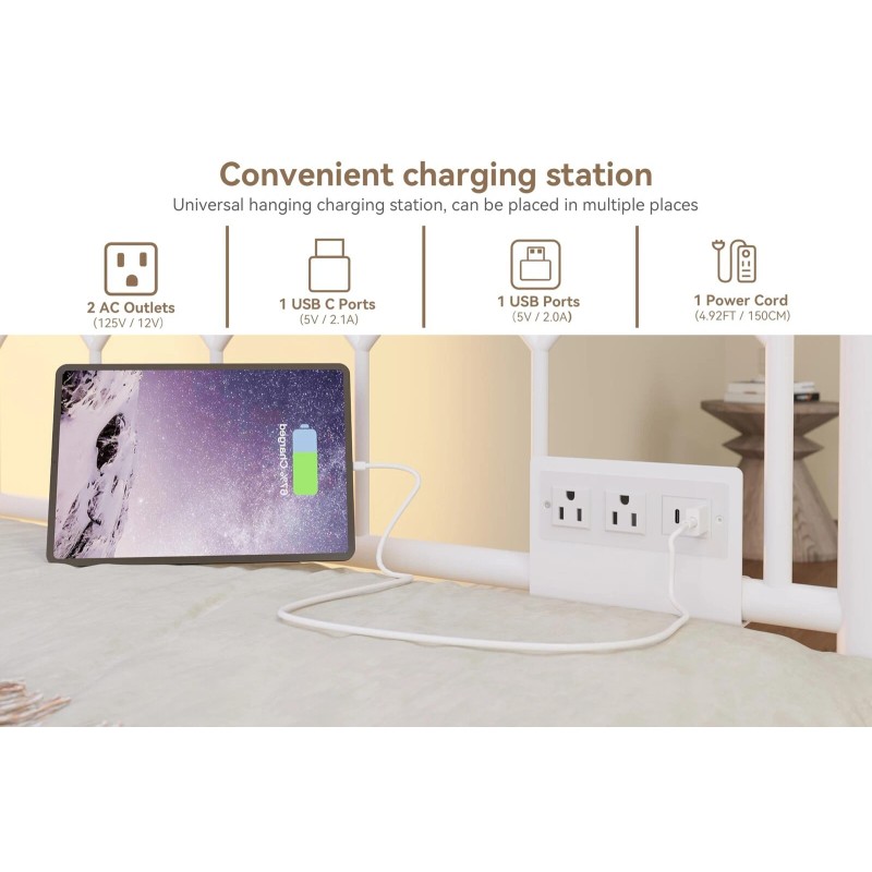 Metal Daybed Pull-out Trundle Twin Size Day Bed Frame w/ Charging Station LED