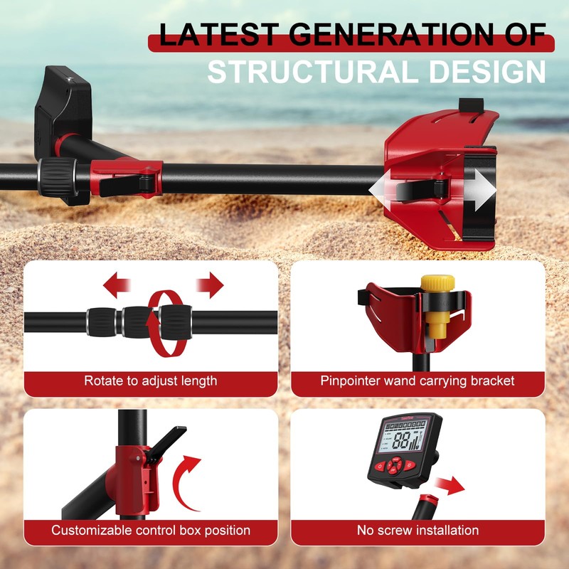 - 【THE LATEST GENERATION OF METAL DETECTOR】 This metal detector, after several generations of updates, collects all the excellent parts of the current detector. Self-designed panel, larger display, 5 modes, stable American chip, rotary height adjustment, rectangular waterproof coil. We will continue to innovate and provide better products, please keep watching.