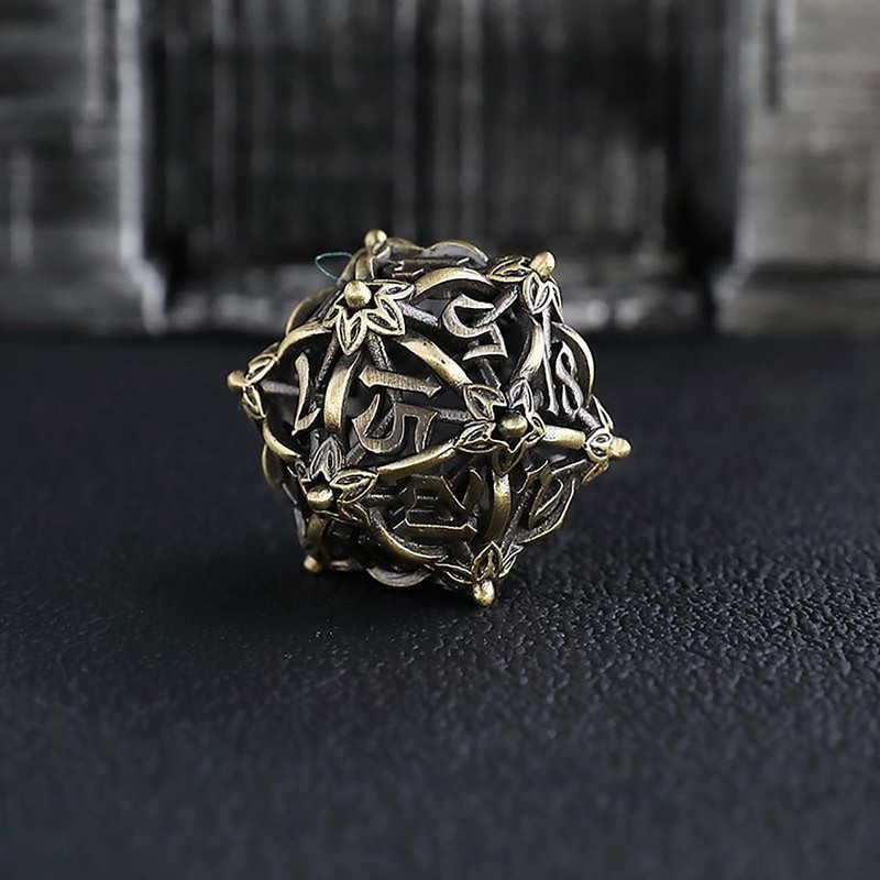 Metal DND Dice Set 7 Flower DND Dice Hollow Polyhedron Bronze Dice D20 D12 D10 D% D8 D6 D4 for Dungeons & Dragons RPG Board Games Table Games RPG MTG Games