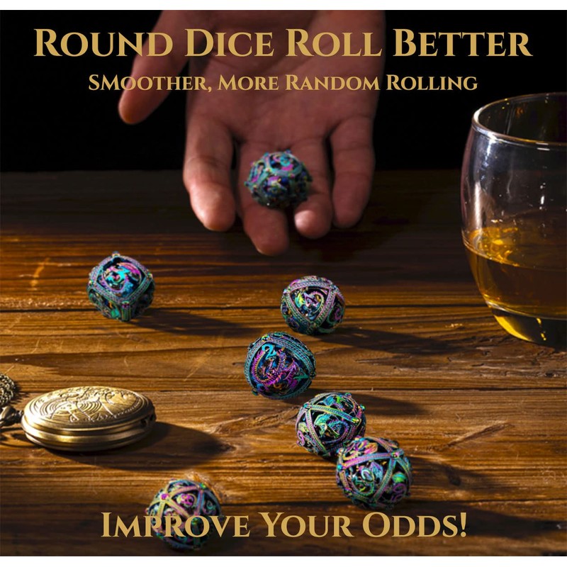 Metal DND Dice Set - Unique Round Hollow Orb Design for Better Rolling - Beau...