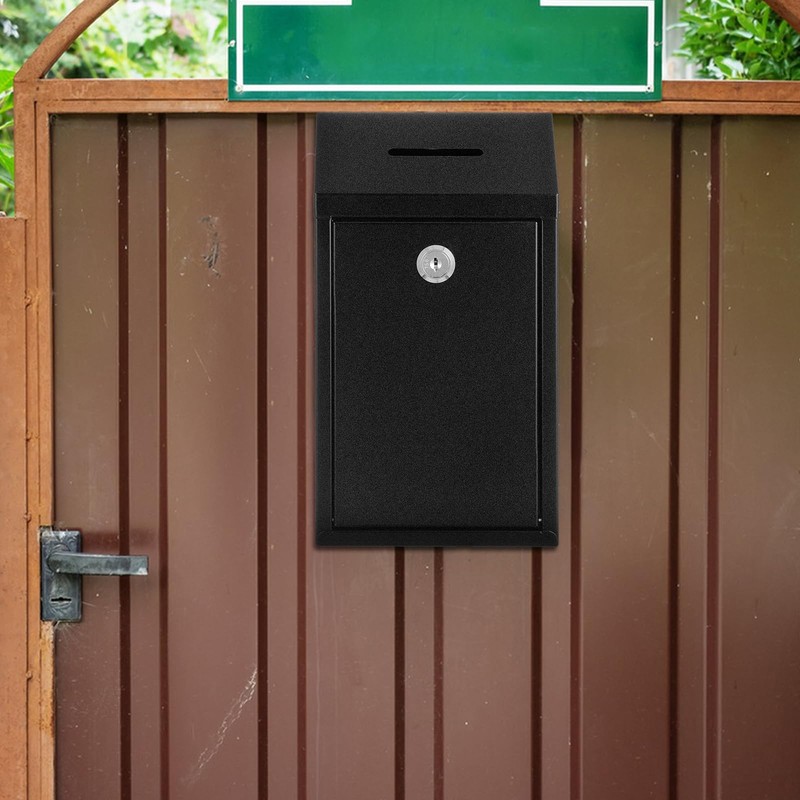 Metal Donation Box Collection Box Suggestion Box with Lock Wall Mounted Mailbox Delivery Ballot Box Safe Ballot Box Key Drop Box for Home Office Outdoor Door, 10.24 x 8.66 x 3.15 Inch
