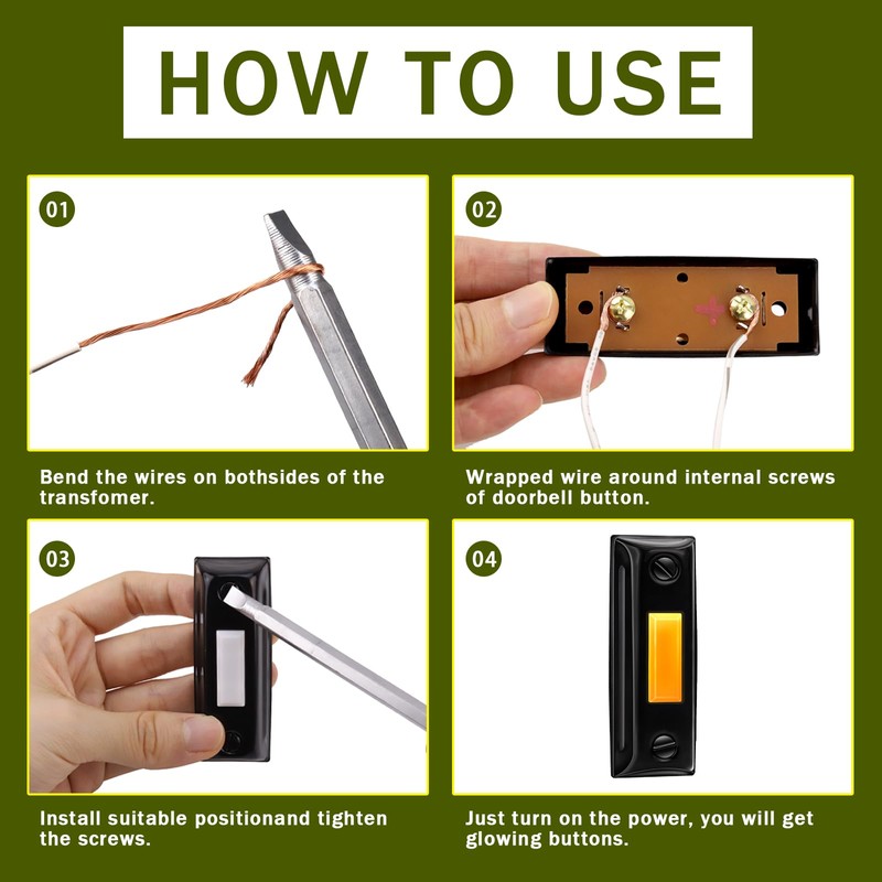 - Simple Installation: The doorbell button comes with mounting screw holes positioned 2 inches apart, making installation quick and easy. It may not require drilling if replacing an old door bell button. Please note, bell wire is not included