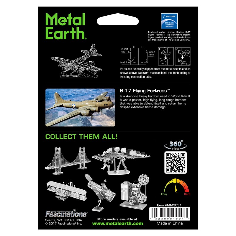 Metal Earth Fascinations B-17 Flying Fortress 3D Metal Model Kit Bundle with Tweezers