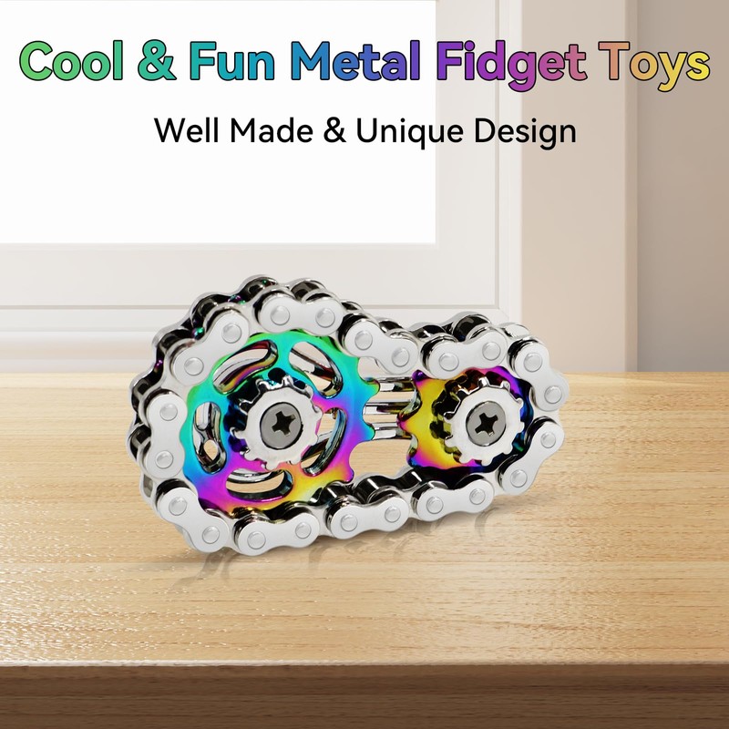 - COOL & FUN METAL FIGGER TOY: Unique and innovative bicycle chain fidget toy is combines the mechanics of a bicycle chain with the fun and stress relief benefits of a traditional. Its well made, rotates easily and smoothly, is a good stress and anxiety relief fidget. Above all, it is a good way to keep your hands busy and direct your mind from whatever causes you stress, suitable for ADHD and autism adults
