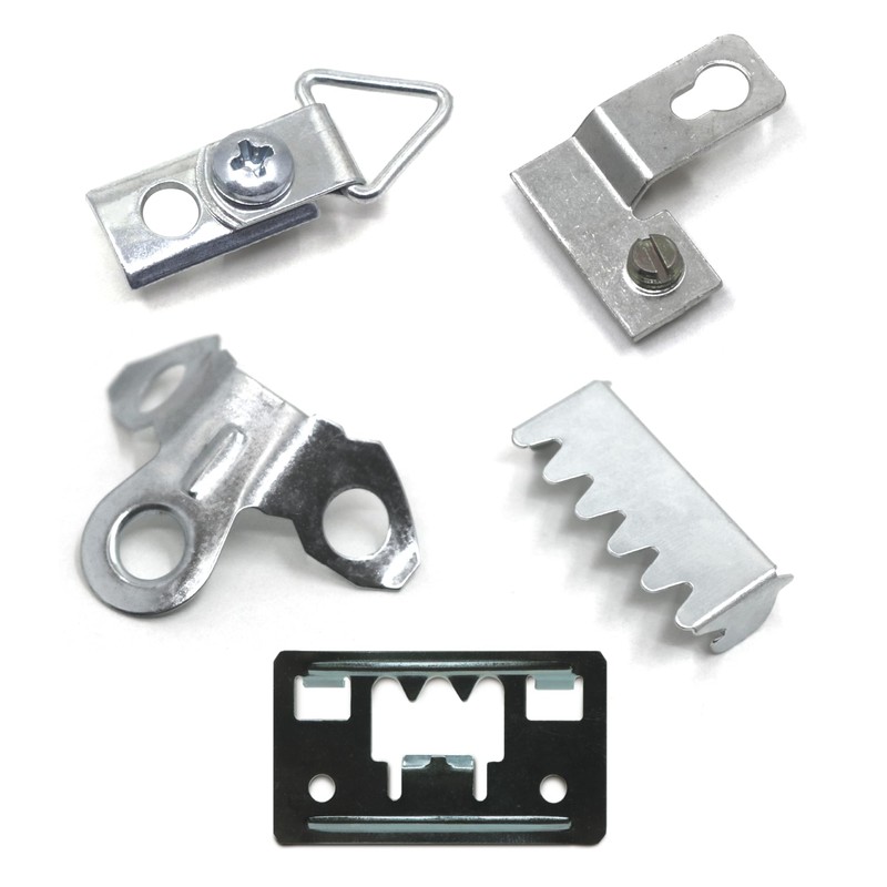 - This metal frame hardware variety pack contains all your favorite metal frame hangers in one convenient set. All hangers included are universally designed to slide easily into aluminum channels and hold your metal frames in place.