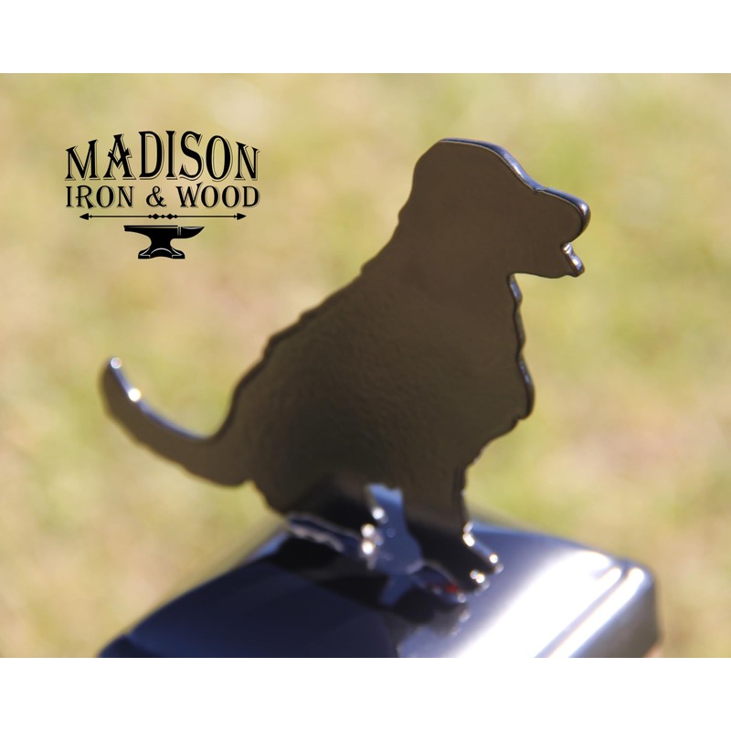 Metal Golden Retriever Post Cap for 4x4 Nominal Post (for Posts 3.5in x3.5 or Smaller-Please Measure Post), Madison Iron and Wood (Gloss Black) (1 Each)