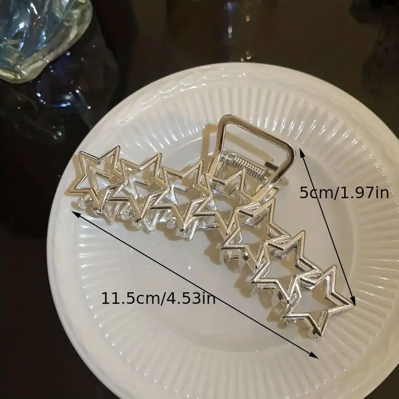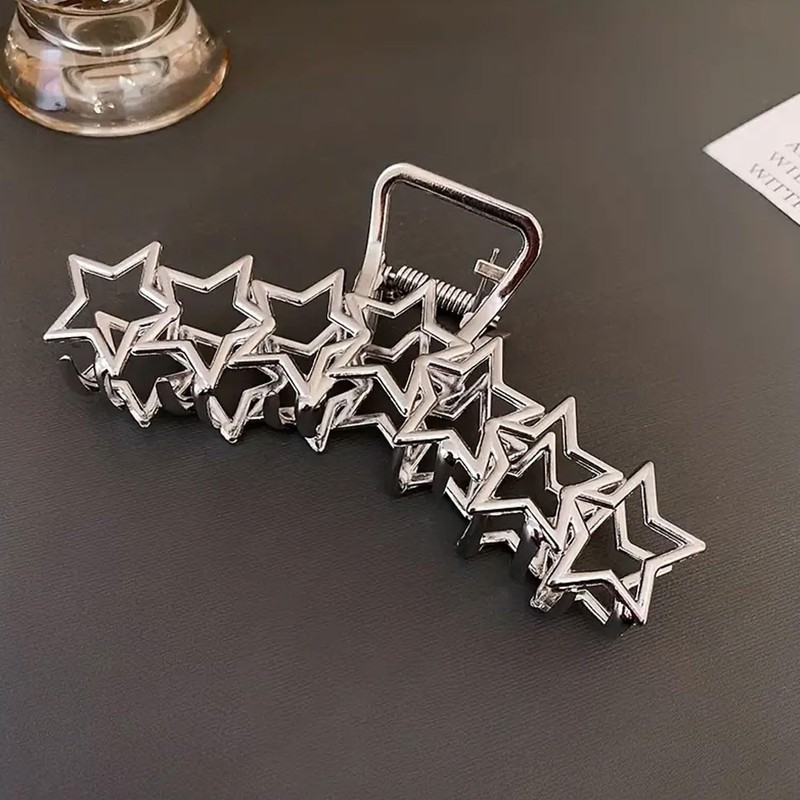 Metal Hair Claw Clips, 1Pcs Stylish Star Pattern Claw Clip for Thin & Thick Hair - Easy Back Styling Accessory (Silver Star)