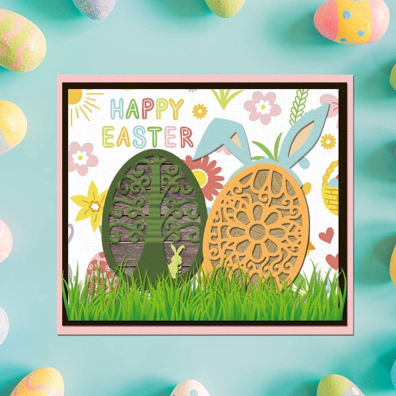 Metal Happy Easter Eggs Frame Die Cuts for Card Making, Easter Flower Eggs Rabbit Ear Cutting Dies for DIY Decor Paper Craft Card Making Scrapbooking Paper Album Stamp