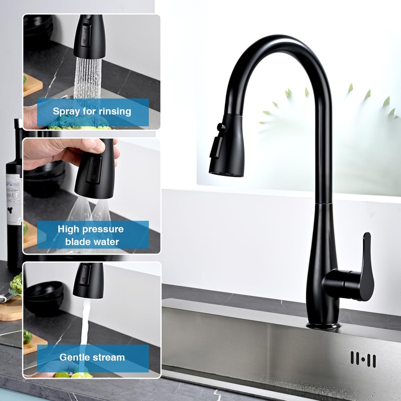 - 【UPDATED VERSION】3 FUNCTIONS Kitchen Sink Sprayer: Easily switch between Stream/Rinse Spray/Blade Spray. And unique-designed high pressure blade spray delivers a strong jet that quickly flushes food debris off dishes and into the drain. Stream for gentle cleaning; Spray for daily rinsing. Simply press the button to switch between 3 modes.