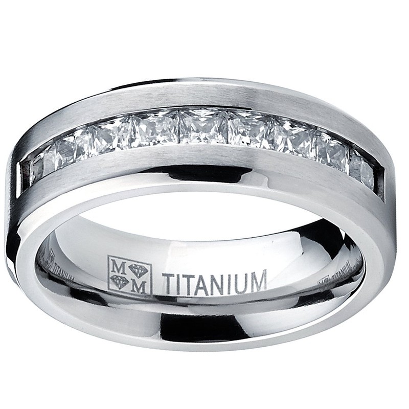- Featuring 9 x large .10 carat grade princess-cut Cubic Zirconia are delicately channel-set in this already gorgeous men's wedding band and hypoallergenic.