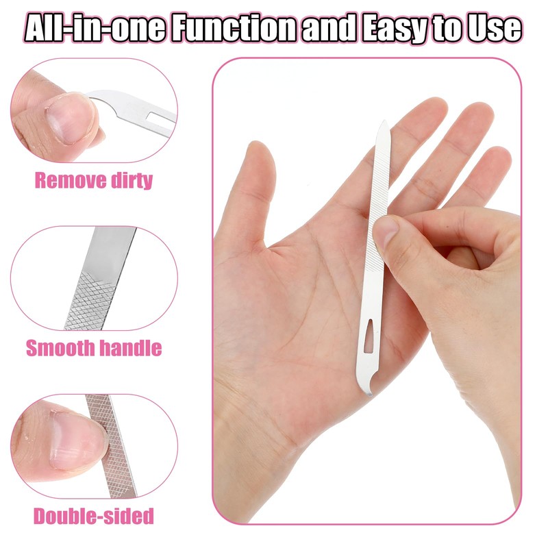 - Multi-function: The metal nail file can easily trim, polish and clean nails. The double-sided fine sand provides ample abrasion for trimming and polishing, and the pointed end can clean under the nails.