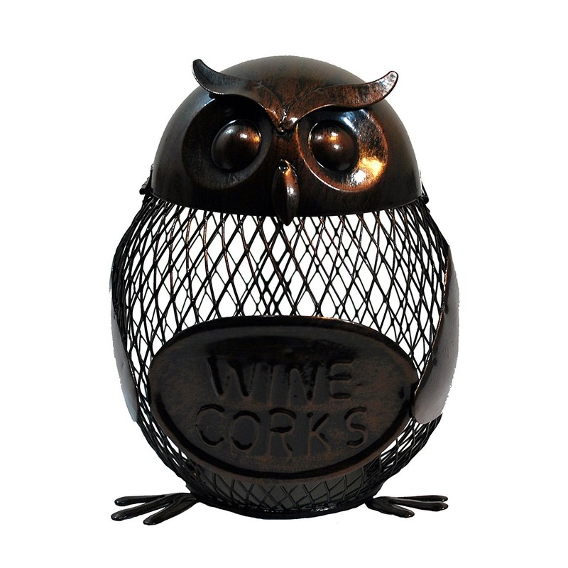 - A cute Owl can keep your corks in a safe place^Size: 5" x 5" x 7"^metal construction with a bronze