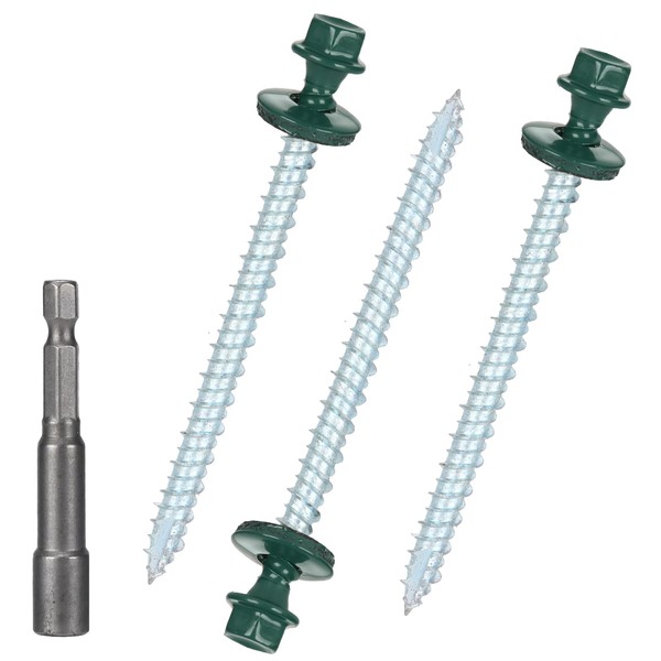 - 【PACKAGE INCLUDES】10 x 2-1/2" Green Hex Head Metal Roofing Screws with EPDM Washer, totally 250 Pcs and a Free 1/4 Hex Driver Bit.