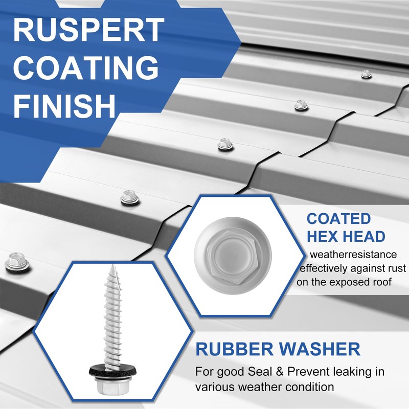 - 🔩【Leak-Proof EPDM Washer】: Roofing screws with EPDM rubber washer have well performance in sealing, preventing roof leaks during heavy rain and snow, offering a strong seal