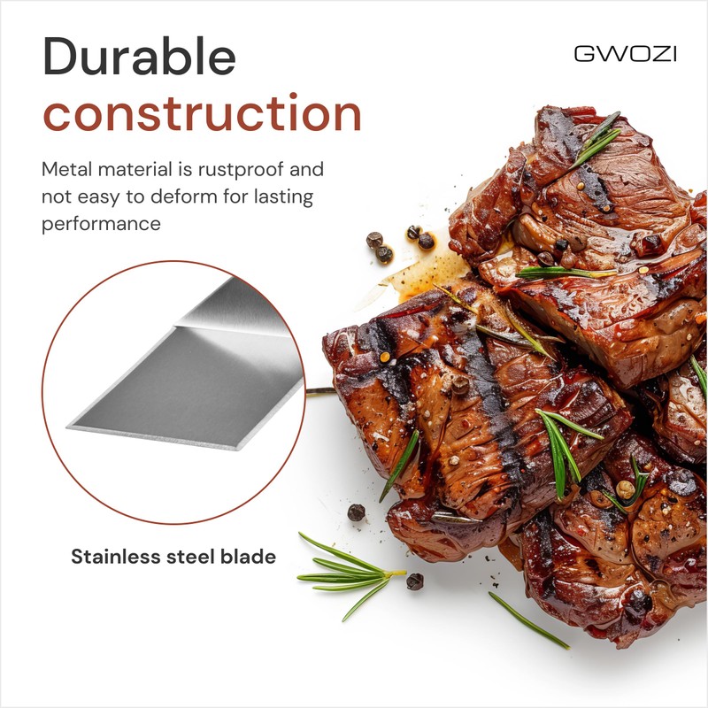 - SLEEK AND STYLISH DESIGN: Not only is smash burger functional, but it also boasts a sleek and stylish design. The combination of a wide stainless steel blade and a sleek plastic handle adds a touch of elegance to your kitchen utensil collection.