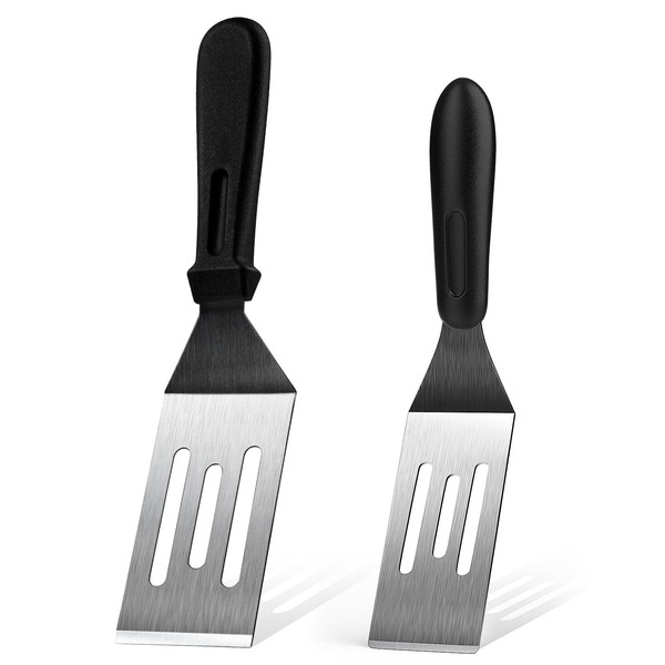 - More Safe and Healthy: Metal spatula is made of food grade stainless steel material, it is rather sturdy and has a nice quality to it. The handle is made of rubber and plastic, and has no odd smell and can handle high-temperature cooking.