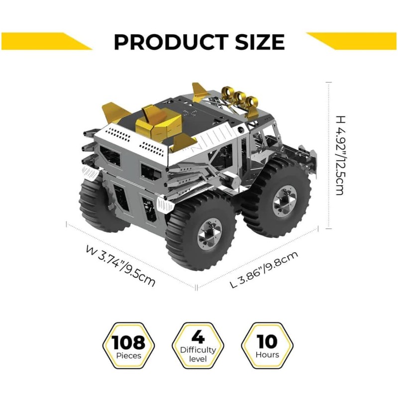 METAL-TIME TROPHY HUNTER ATV ATV Model SHERP Prototype Model Metal 3D Puzzle Construction Collectible Figure, DIY Stainless Steel Construction with Tool Box, 108 Pieces