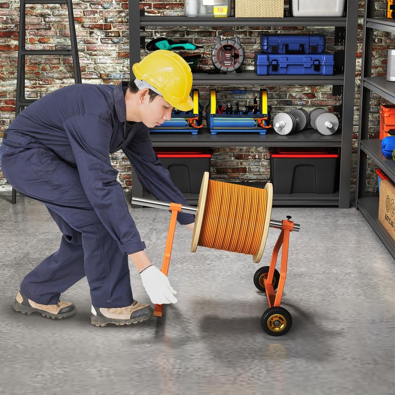 - Easy To Use: The cable rack is equipped with two rubber wheels and an anti-slip strip under the other rack, ensuring stability and ease of use when pulling wire spools.