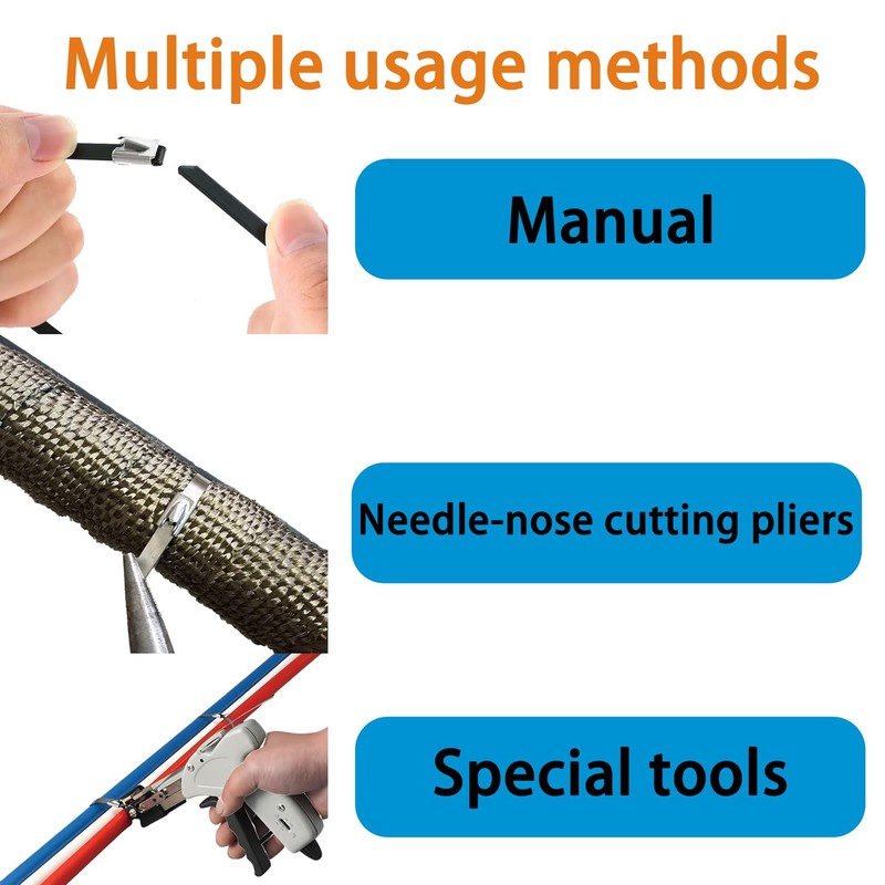 - Reusable self-locking mechanism: can be adjusted and tightened repeatedly, with flexible installation; Tool free operation saves time and can be easily fixed with pointed nose pliers; Easily trim excess parts with tin scissors or diagonal knives