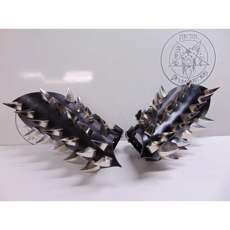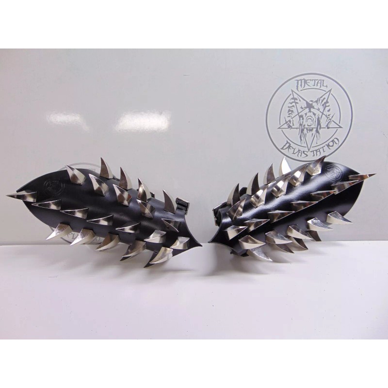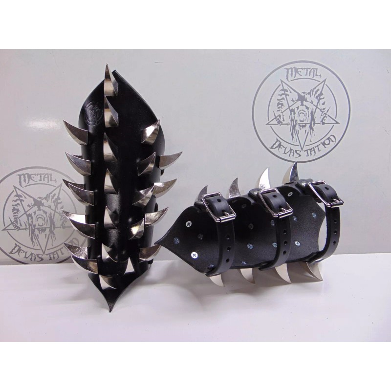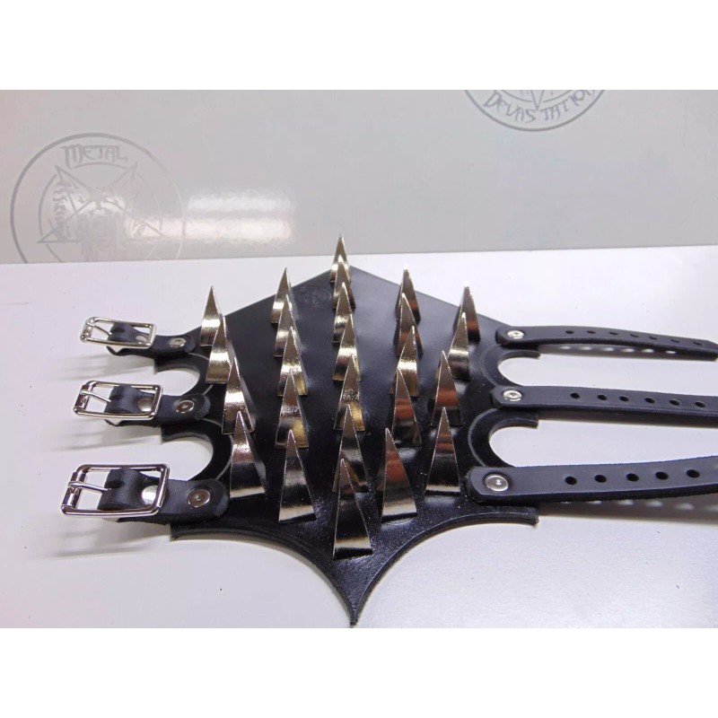 metaldevastation.com ABSU.. LEATHER CLAW SPIKE GAUNTLET. BLACK METAL (MDLG0370) - LEFT, BUCKLES