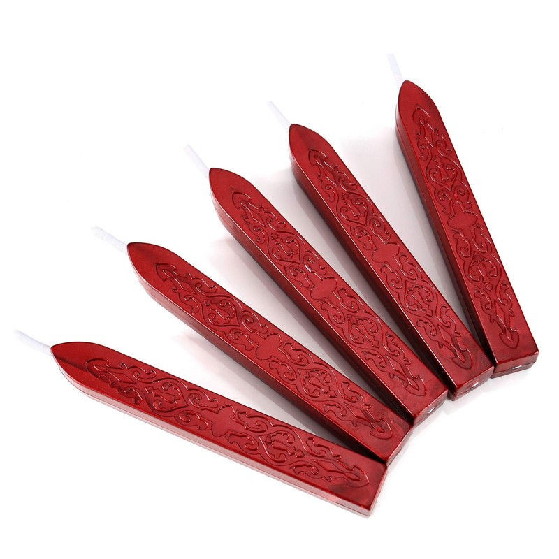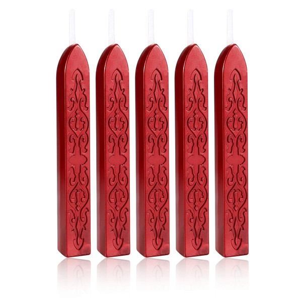 Metallic Red Sealing Wax Sticks, Yoption 5 Pcs Totem Fire Manuscript Wax Seal Sticks with Wicks for Wax Seal Stamp (Metallic Red)