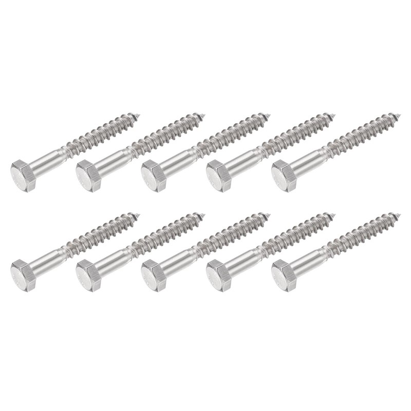 - [4]: BENEFITS - Made of 304 stainless steel, the hex lag screws are suitable for use in damp environments