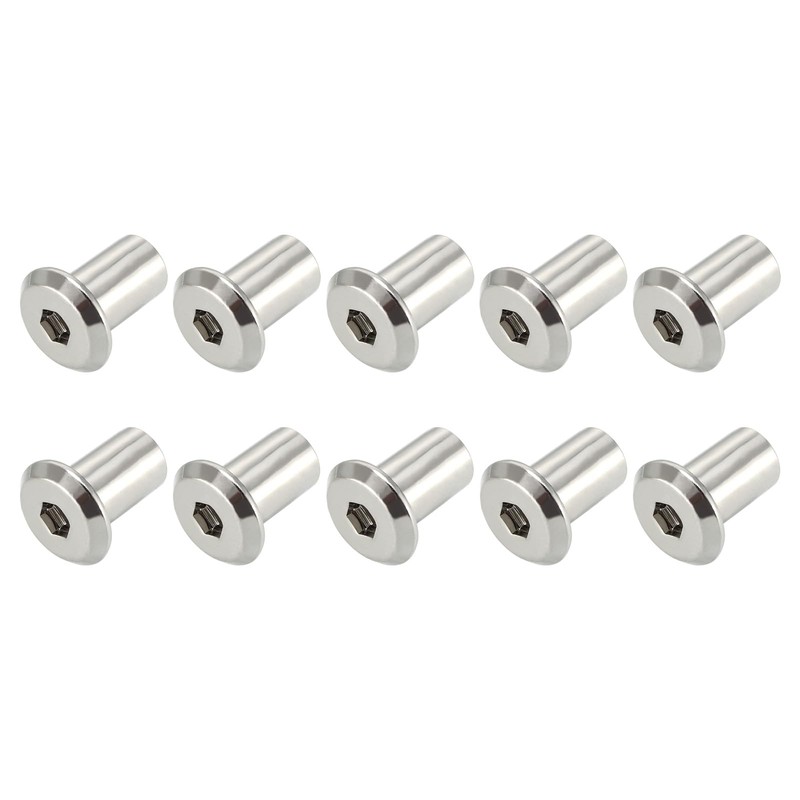 METALLIXITY 20pcs Rivet Hex Socket Head Nuts (M6x12mm) Nickel Plated Iron Rivet Cap Insert Nuts - For Furniture Bookcase Wardrobe Silver Tone
