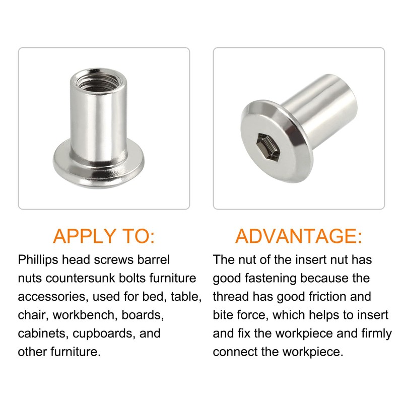 BENEFITS - The nut on the insert nut helps you insert and lock the work parts in place because the thread has good friction and biting.
