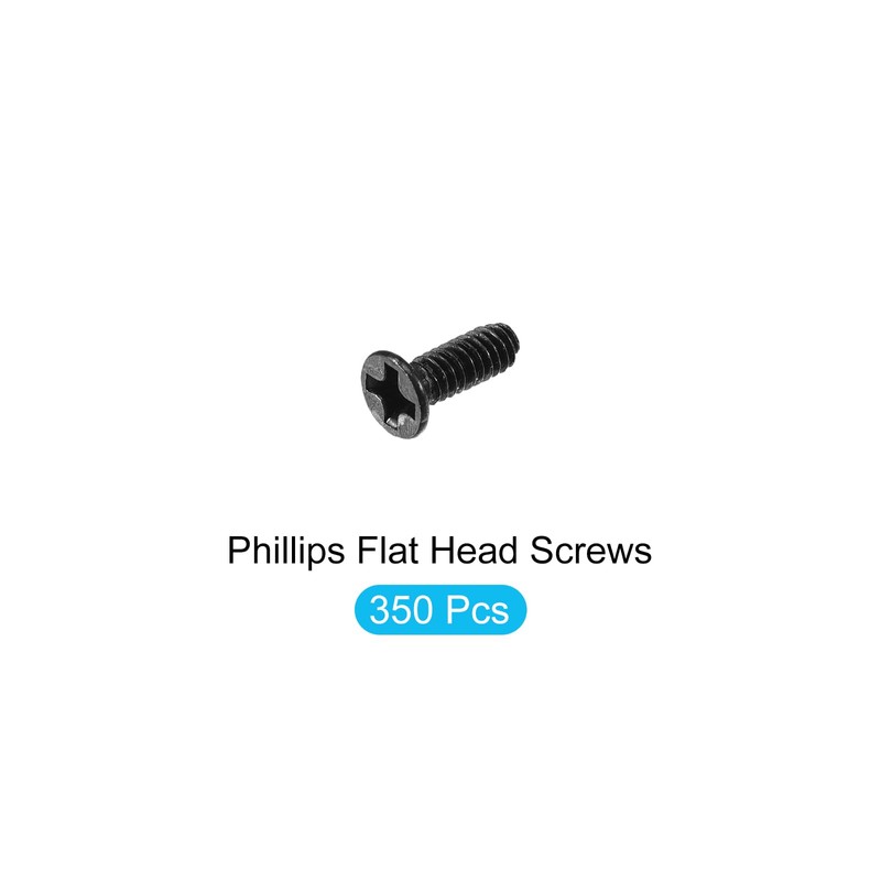 METALLIXITY 350pcs M2 x 6mm Flat Head Screws Carbon Steel Machine Screws for Eyeglass Watch Small Electronics Black