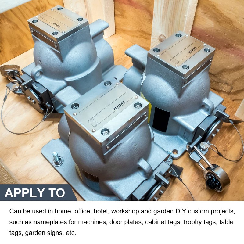 - [1]: APPLY TO - Can be used in home, office, hotel, workshop and garden DIY custom projects, such as nameplates for machines, door plates, cabinet tags, trophy tags, table tags, garden signs, etc.