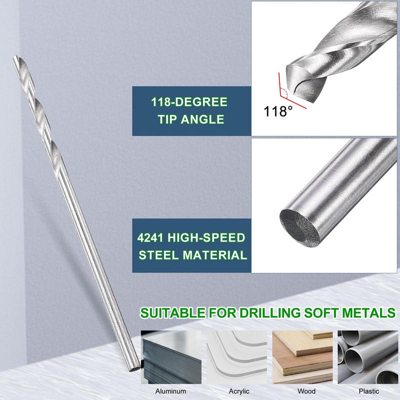 ADVANTAGE - The 4241 high-speed steel material provides high hardness and wear resistance. The uncoated bright finish enhances smoothness and wear resistance, extending the lifespan of the drill bit. With a 118-degree pointed angle, these drill bits allow for faster feed rates and higher processing efficiency.