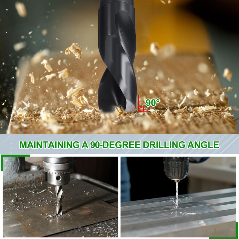 ADVANTAGE - The M2 High-Speed Steel (HSS) drill bit is suitable for drilling a variety of metals, including thin stainless steel, iron, aluminum, and copper. Its high hardness and wear resistance enable outstanding performance when machining harder materials. Nitriding Black finish can further enhance the drill bit's wear and corrosion resistance, thereby extending drill bits' service life.