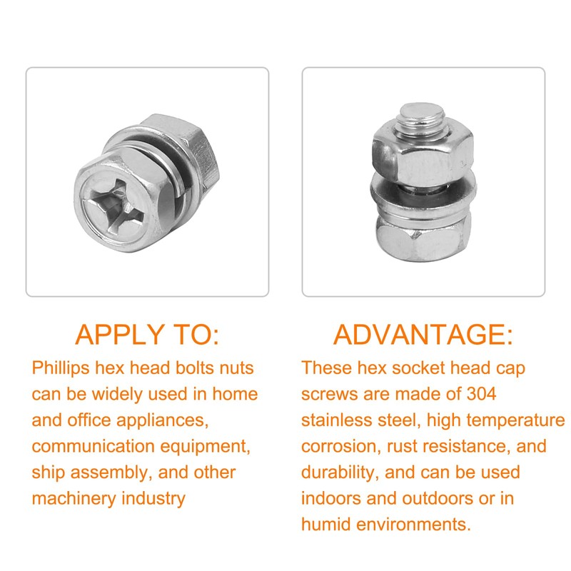 - [4]: Advantage - These Hex head screws are made from 304 stainless steel, high temperature, corrosion resistance, rust resistance, durable and can be used indoors and outdoors or in a humid environment