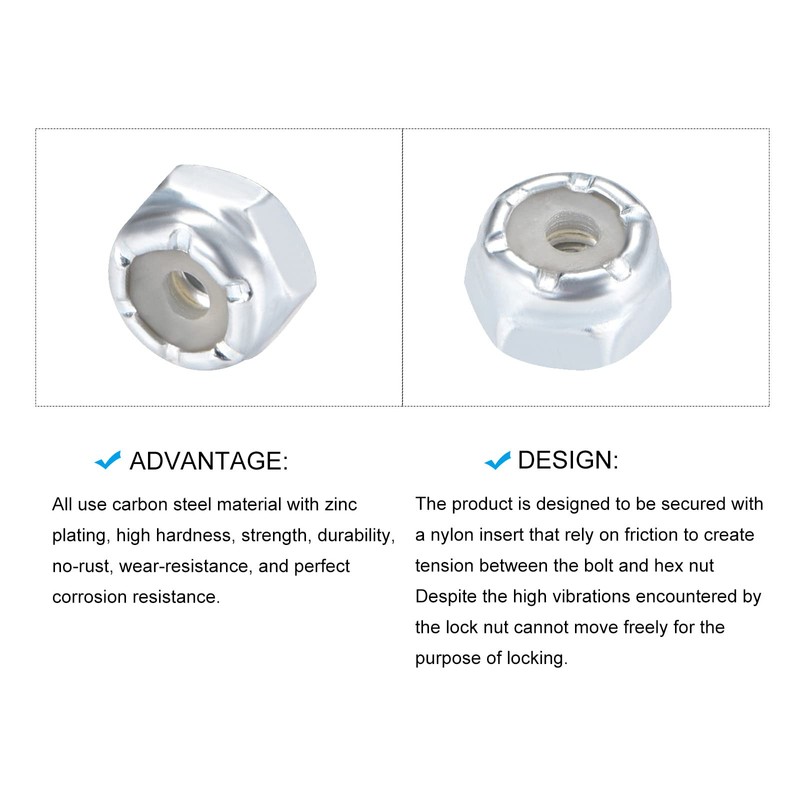 - [5]: QUANTITY INCLUDED - 50pcs x Hex Lock Nut Fasteners