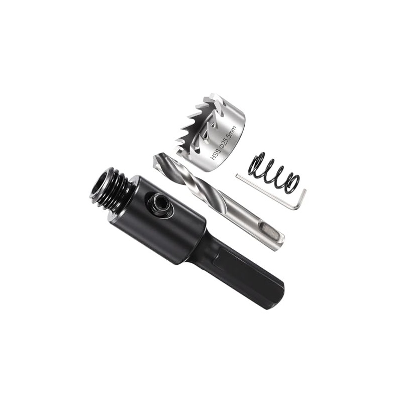 - [1]APPLY TO - 4241 High Speed Steel Hole Saw Kit is engineered for drilling soft metal, wood, and synthetic materials including PVC, plastic, and with specific compatibility for structural alloys such as low-carbon steel, brass, and aluminum alloys. It operates effectively on hand-held electric drills, bench-mounted vertical drills, and portable magnetic base drills, serving critical functions in automotive maintenance, metal fabrication, and carpentry renovation projects