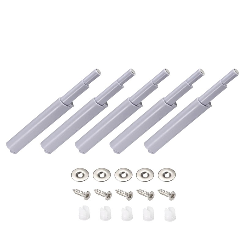 METALLIXITY Magnetic Push Latches (3.39"x0.39") 5Pcs, Plastic Touch Latches Damper Buffers - for Door Cabinet Drawer, Home Decoration, Gray