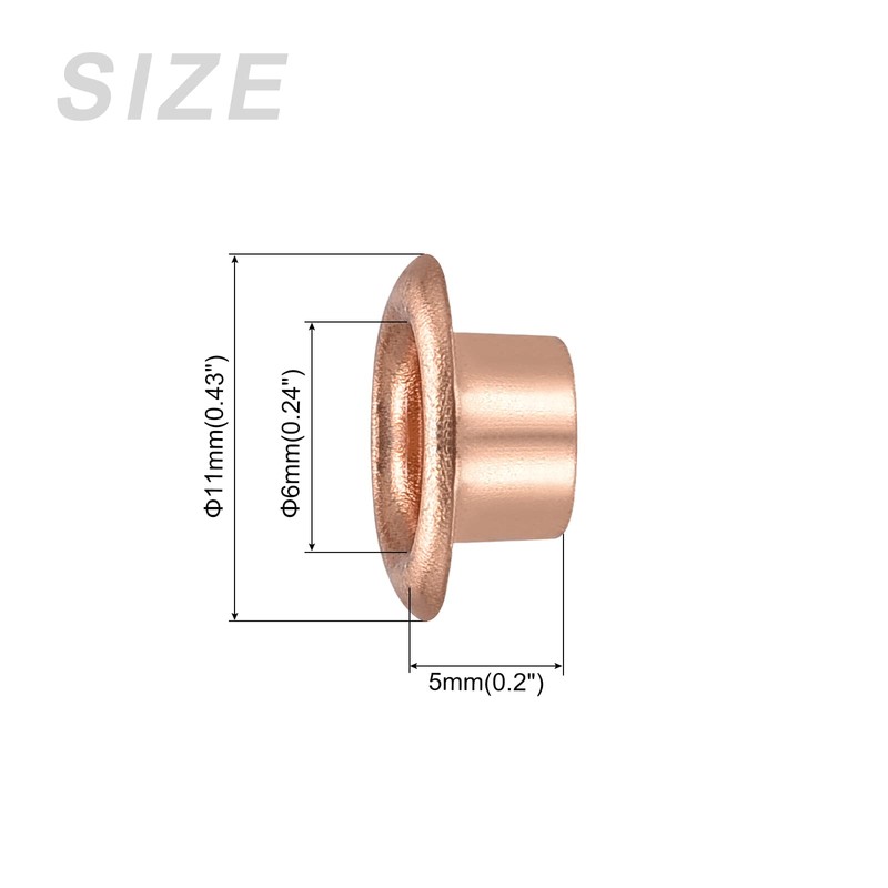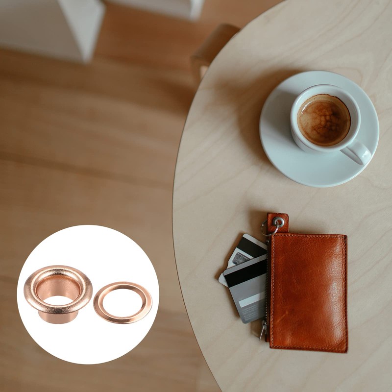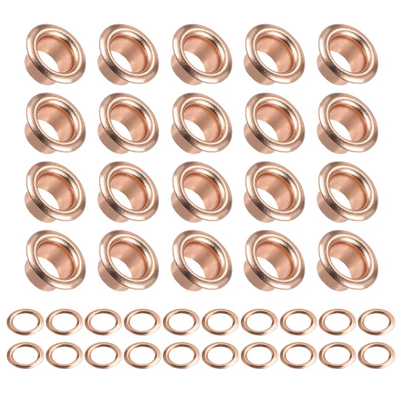 METALLIXITY Ösen mit Unterlegscheiben (11 x 6 x 5 mm), 200 Stück, Eisenösen-Set – für Leder, Leinwand, Kleidung, DIY, Handwerk, Rosenton