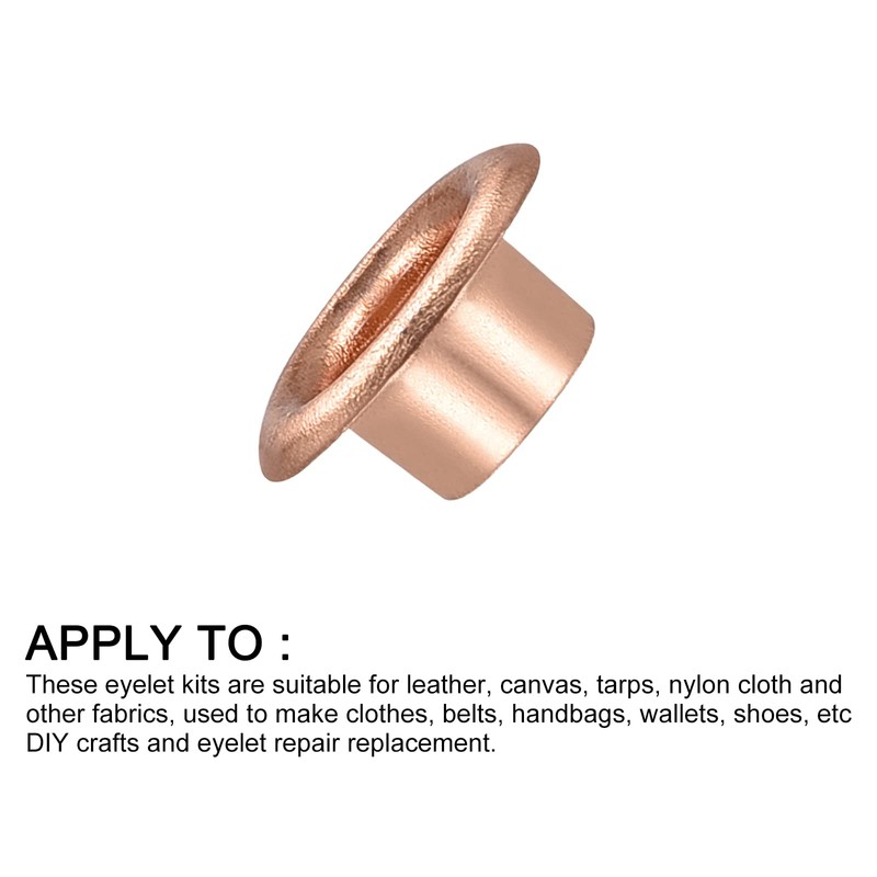 - [1]: Anwendung – Diese Ösen-Sets sind geeignet für Leder, Leinwand, Planen, Nylongewebe und andere Stoffe, die verwendet werden, um Kleidung, Gürtel, Handtaschen, Geldbörsen, Schuhe usw. zu machen und zum Reparieren von Ösen zu dienen.