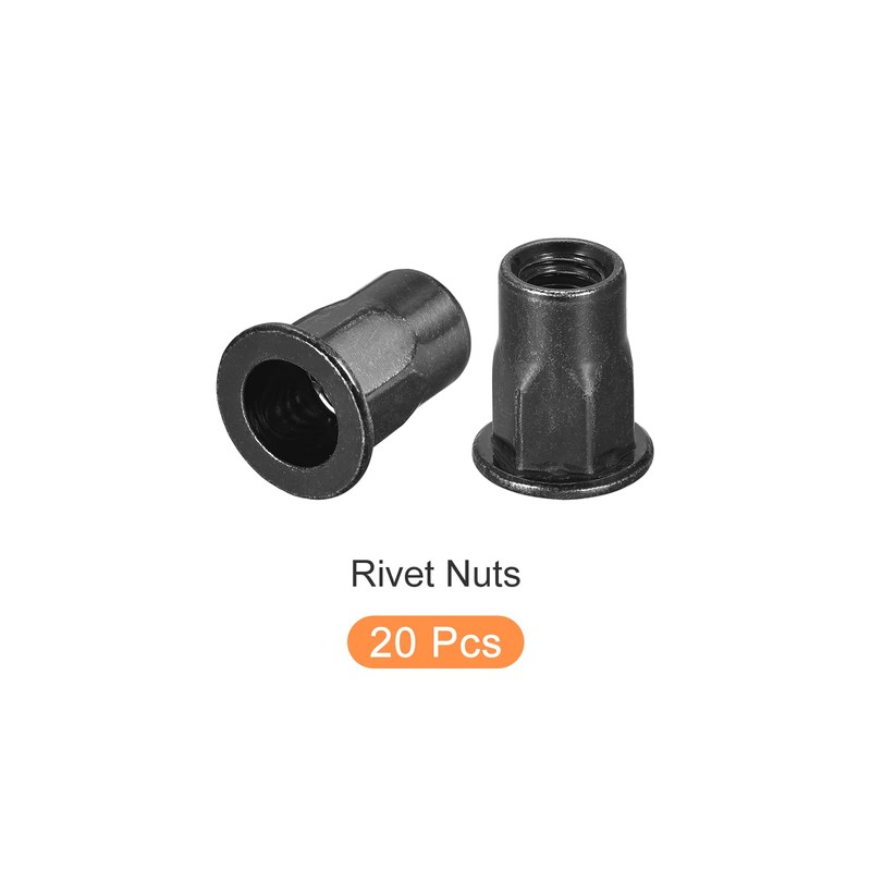 METALLIXITY Rivet Nuts (M6) 20Pcs, Carbon Steel Half Hex Threaded Insert Nuts - for Furniture Mechanical Fasteners, Black