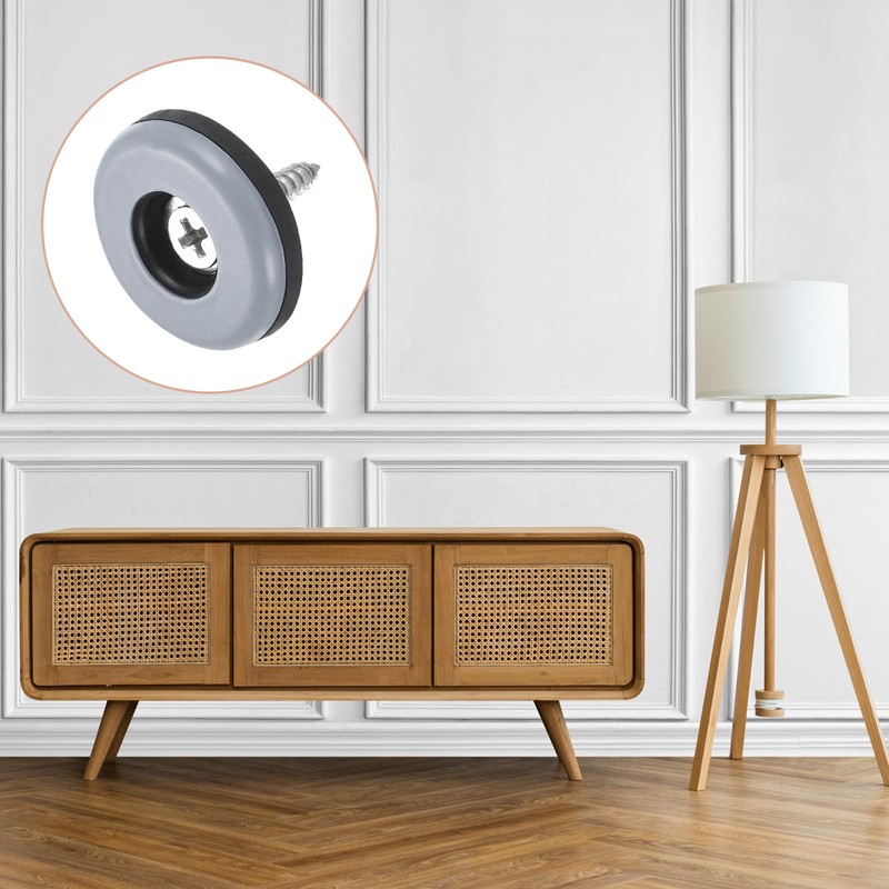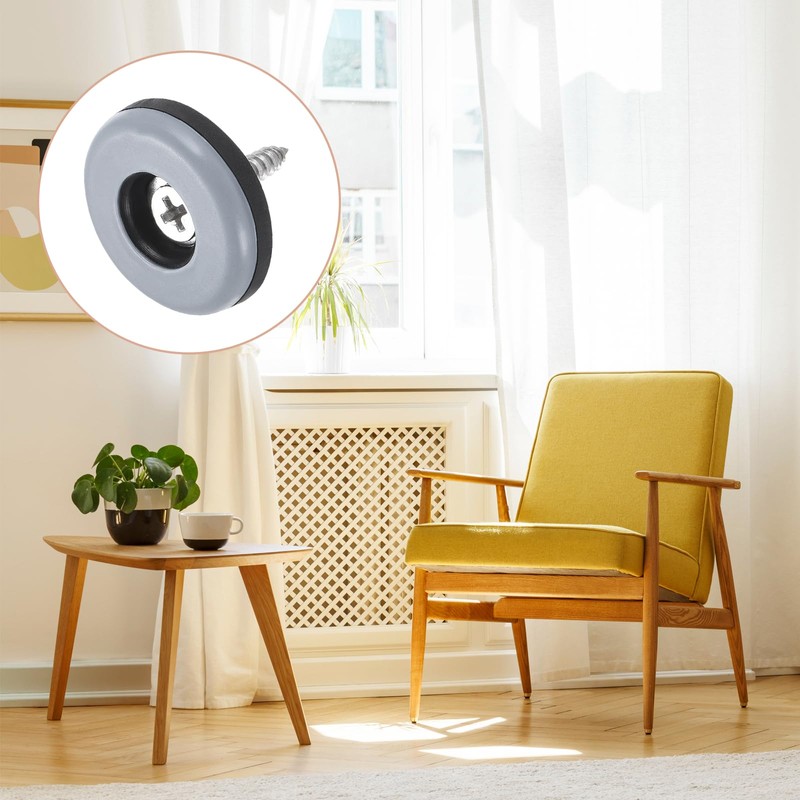 - [4]: VORTEIL - Der Kopf besteht aus PTFE-Material, das verschleißfest, robust und belastbar ist. Die Schrauben sind aus Metall gefertigt und stark genug, um sicher an Möbelfüßen befestigt zu werden.