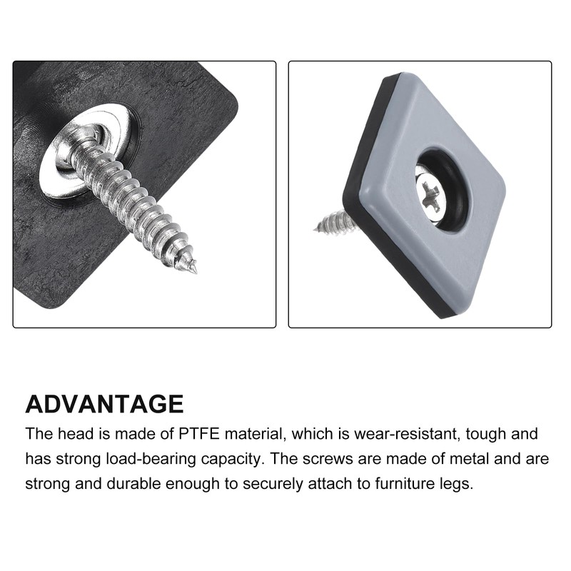 ADVANTAGE - The head is made of PTFE material, which is wear-resistant, tough and has strong load-bearing capacity. The screws are made of metal and are strong and durable enough to securely attach to furniture legs.