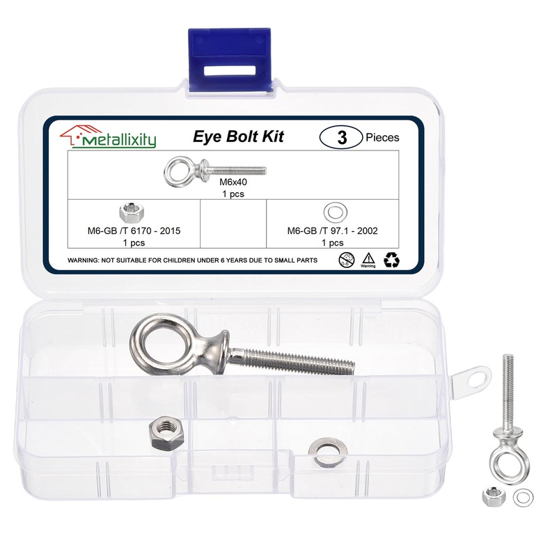 METALLIXITY Shoulder Eye Bolt with Washers & Nuts (M6x40mm) 1Set, 316 Stainless Steel Machinery Lifting Ring Threaded Eye Bolt - for Load Hoisting, Silver